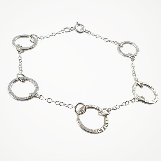 Linked circle bracelet, sterling silver
