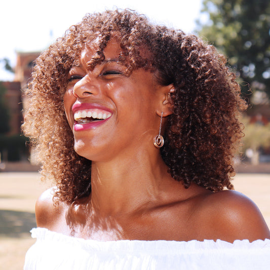 Linked circle earrings - silver & rose